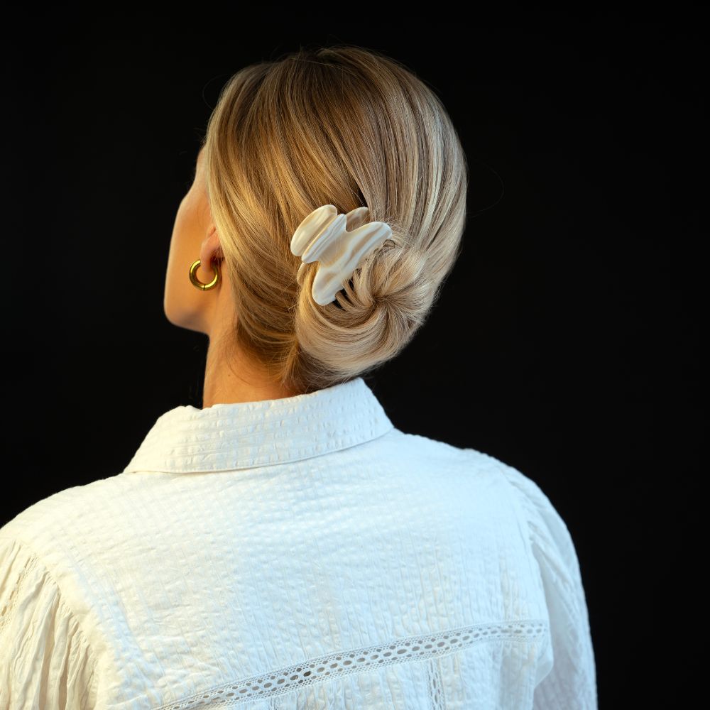 In fine or medium hair, use the claw to create a French twist of up-do style, and in thick hair, pull back smaller sections to create a half-up style. Need a different size? This claw also comes in Mini, Small and the Large Hair Claw.