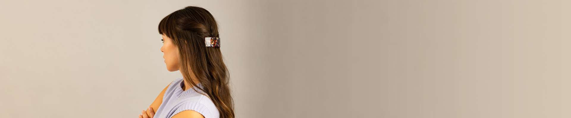 Looking for a timeless to tame your long hair? Barrettes are about to be your new best friend! Pull your long hair back into a sleek style with a beautiful handmade barrette. There’s a reason barrettes never go out of style: they are easy to use, effortlessly chic, and most importantly, they are reliable! For long, thick hair, look for a barrette with some curve, like our luxurious Wide Arched Barrette. A curved barrette will allow for more hair to be held securely. Use yours to hold your hair up in French twists and pleats. If you love a low ponytail, then our Narrow Bar Barrette is the one for you. This works excellently in long hair, as the barrette has plenty of room to hold all of your hair. There are endless options for hairstyles using barrettes in long hair. We recommend keeping a barrette in your handbag for quick fixes and on-the-go styling!