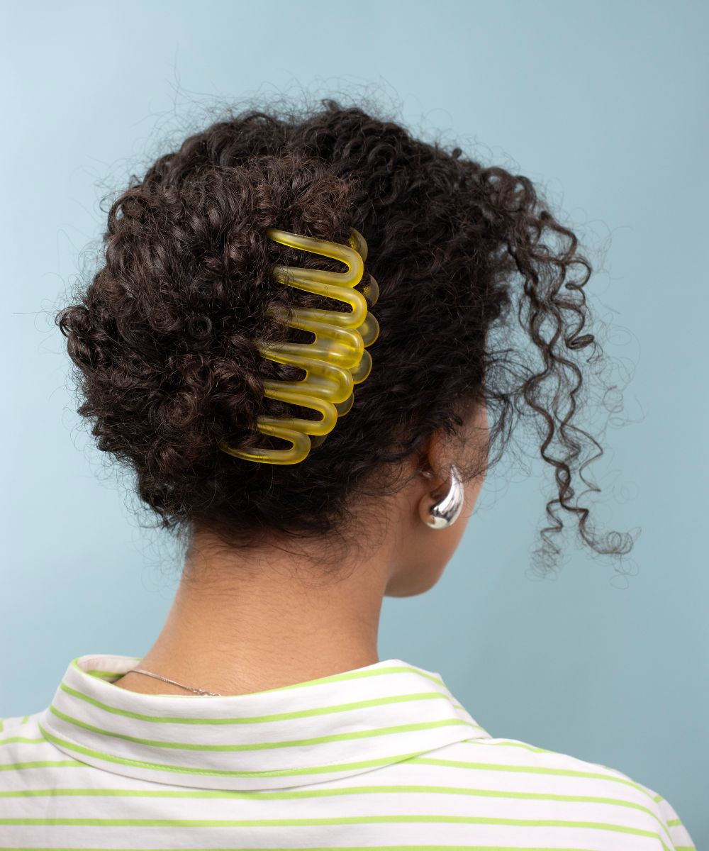 Tired of your everyday ponytail? Is your hair getting damaged by high street hair ties? You need to try a Banana Clip. These clips really shine in curly hair - the curlier the better! Sweep your hair up into a ponytail and close the banana clip around it. The teeth with work with your curls to stay in place, rather than twisting and tearing them like a hair tie. This style looks amazing for those embracing their natural texture while still wanting to keep the hair up and out of the face. The Banana Clips come in a range of sizes from Large to Mini, so no matter your hair length, there is something for you.