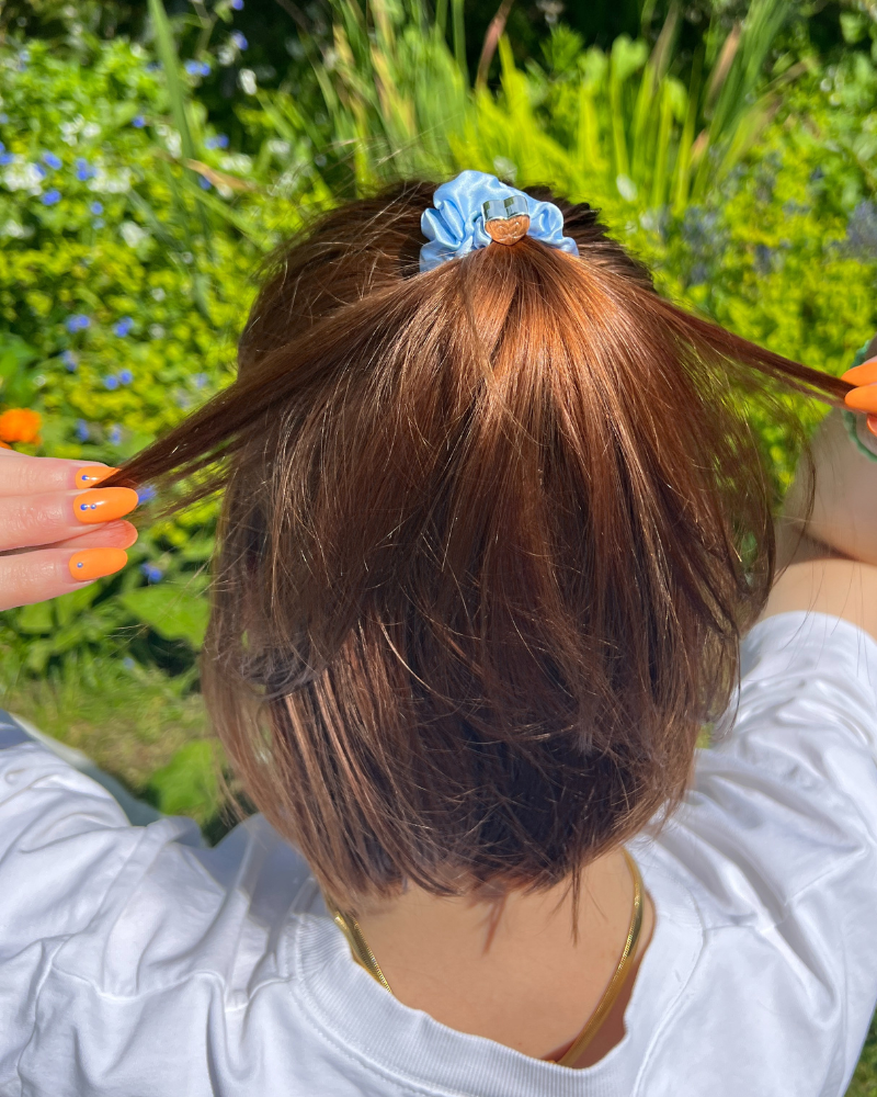 Depending on how short your hair is, playing around with colourful scrunchies and cute charm hair bands can be a really fun way to style your short locks. Following a similar principle to using hair claws in short hair, you’ll probably want to use hair bands and scrunchies for half-up half-down styles in short hair. A half-up half-down ponytail held with a scrunchie is the ultimate eighties look. Or why not use matching colours to hold two bunches in place? The choices are endless, and our Coloured Charm Hairbands and Heart Charm Silk Scrunchies are both perfect choices to hold hair in place. And the best part is, they look just as great as a bracelet on your wrist as they do in your hair!