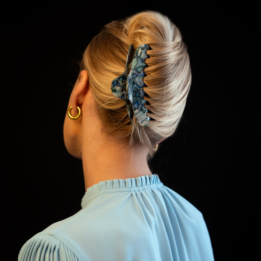 La sostenibilidad es importante para nosotros, por eso todos nuestros accesorios para el cabello hechos a mano en Francia están hechos de un material de acetato de celulosa de resina ecológica que es biodegradable. Obtenga más información en nuestra publicación de blog aquí.